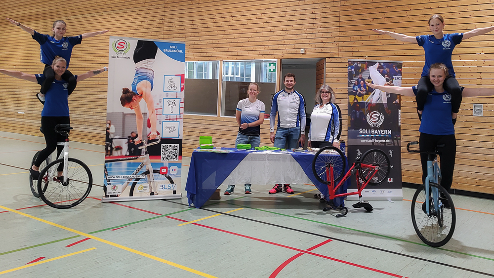 Durch aus Bruckmühl angereisten Kunstradsportler, Eltern und Organisator, Andreas Pfliegl wurde der Kunstradsport live präsentiert und eine Aktivstation für das Gewinnspiel betrieben. Die mitgereisten Sportlerinnen hatten einen vielbeachteten Auftritt an der Hauptbühne und Mina wurde als frisch gebackene Vizeeuropameisterin der Juniorinnen interviewt; Die Besucher in unserer Halle informierten sich über den Kunstradsport und probierten es selbst mit einfachen Übungen - auch die Erwachsenen - auf den Rädern aus.