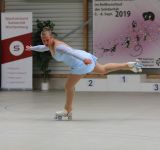 In der Juniorenklasse der Damen ging Lea Fischer an den Start. Obwohl sie ihr gewohnte Sprungstärke nicht unter Beweis stellen konnte, präsentierte sie eine stimmige und choreografisch ausdrucksstarke Kür und belegte damit Rang 11.
