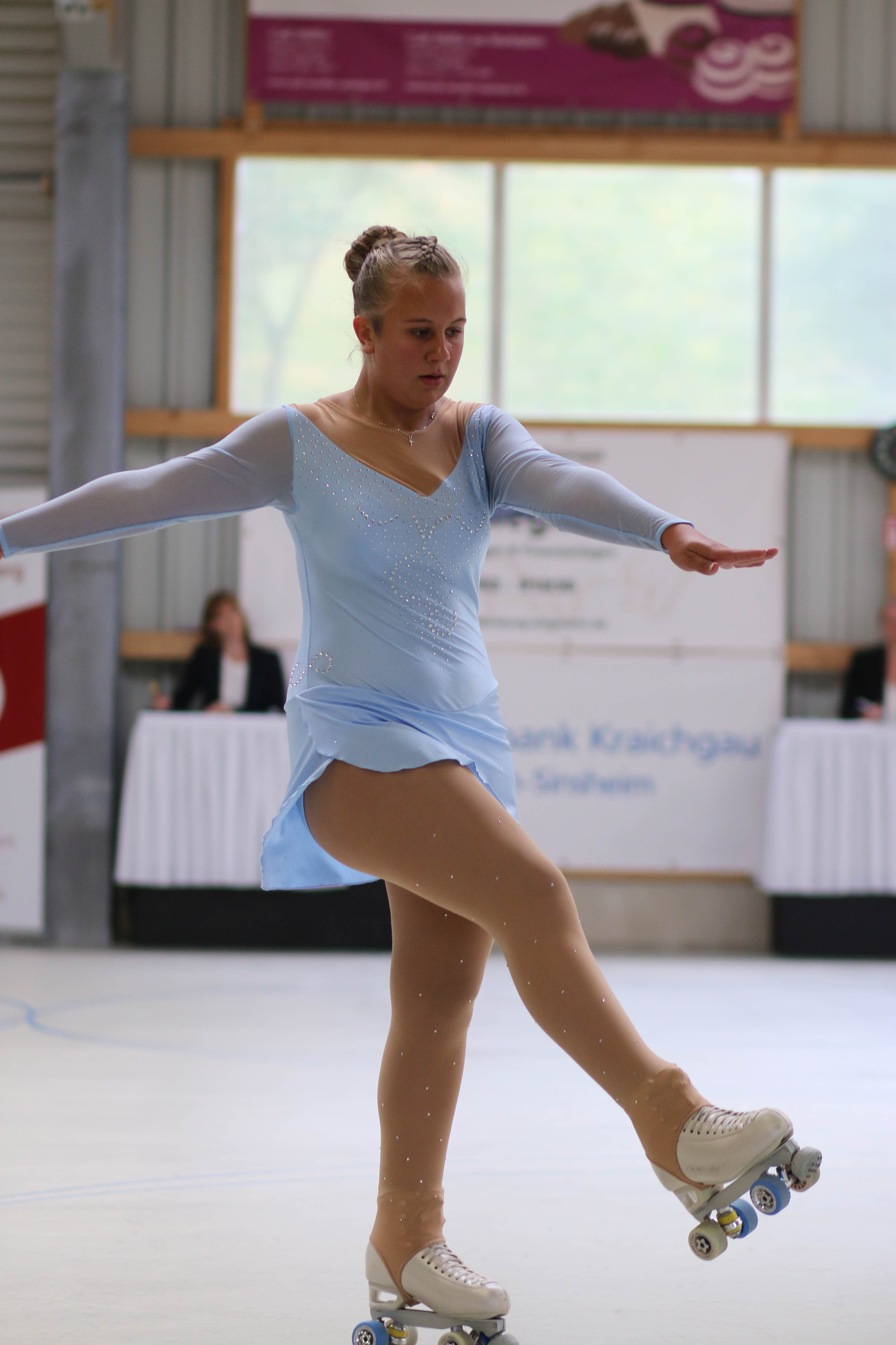 Am Freitag startete in den kühlen Morgenstunden pünktlich um 08:30 der Pflichtwettbewerb in der Nachwuchsklasse. In diesem Jahr waren Melissa Kunath aus Ismaning, Ramona Kraus aus Bruckmühl und Sabrina Höfer aus Penzberg am Start. Da eine extra für den Rollkunstsport